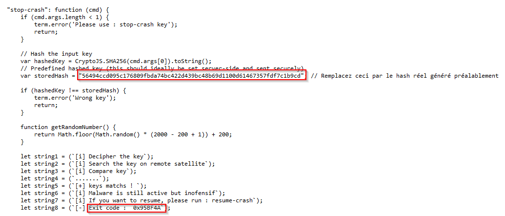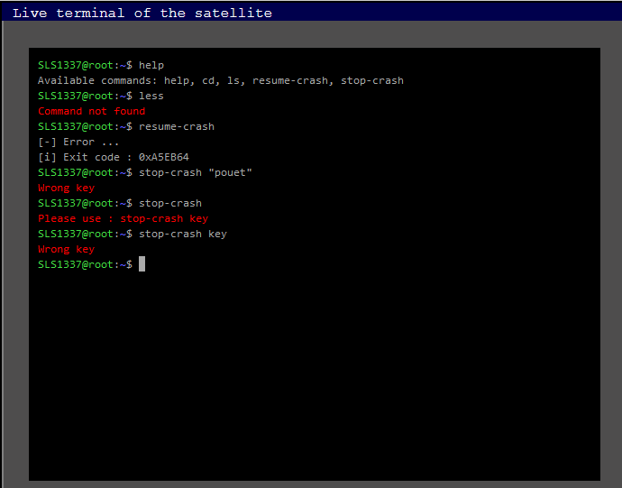 Je regarde donc la console et fait help, je vois la commande stop-crash… mais ça ne fonctionne pas nous n’avons pas la clé!!!