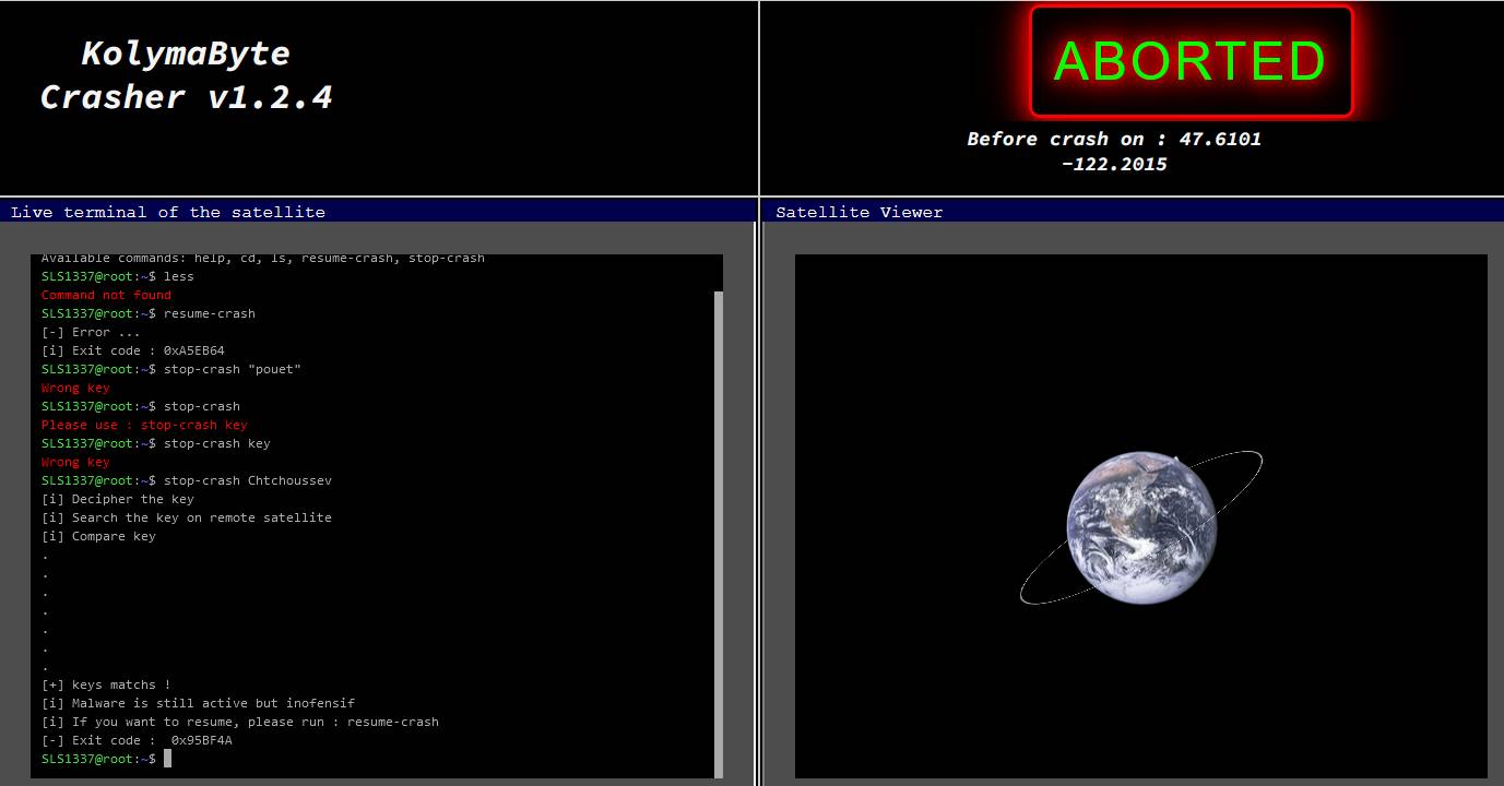 Parfait ! Il est temps de mettre un terme à cette machine infernale. Vous vous trouvez désormais devant votre ordinateur, le destin du satellite reposant entre vos mains. Il est l’heure de désactiver le malware !