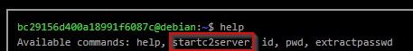 Nous avons plusieurs commandes, une est intéressante, c’est “startc2server”. Je prends le risque de l’utiliser afin de voir s’il y a différentes informations s’affichant: