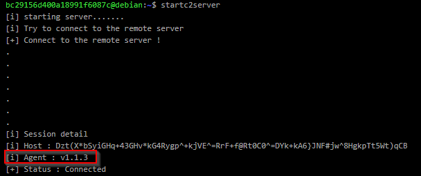 Nous avons donc notre serveur C2 (Command and Control) activé avec des informations comme le host illisible (pour le moment) mais aussi la version qui est: