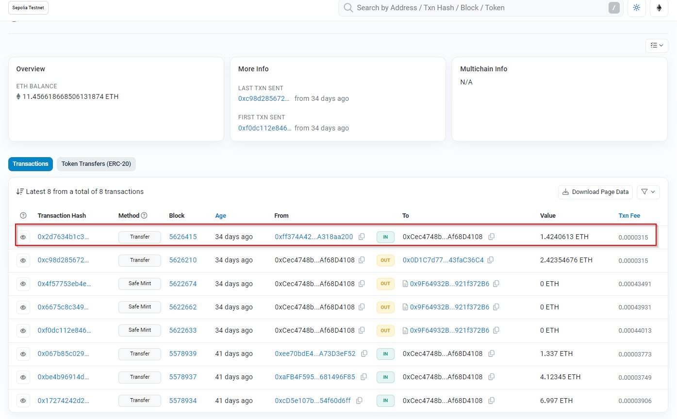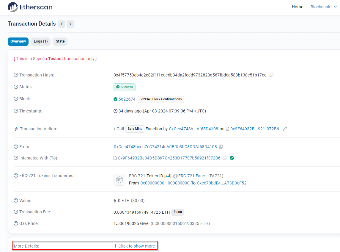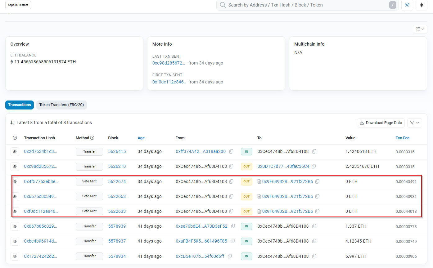 Maintenant, je jette mon dévolu sur les transaction “Safe Mint”.