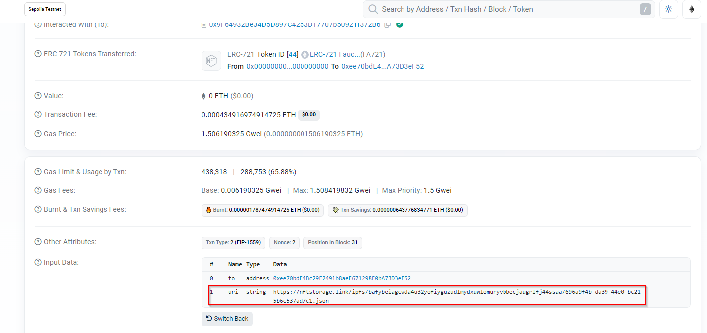 Nous avons donc un “nft storage” qui contient un JSON! Je vais de ce pas lire ce qu’il y a dedans.