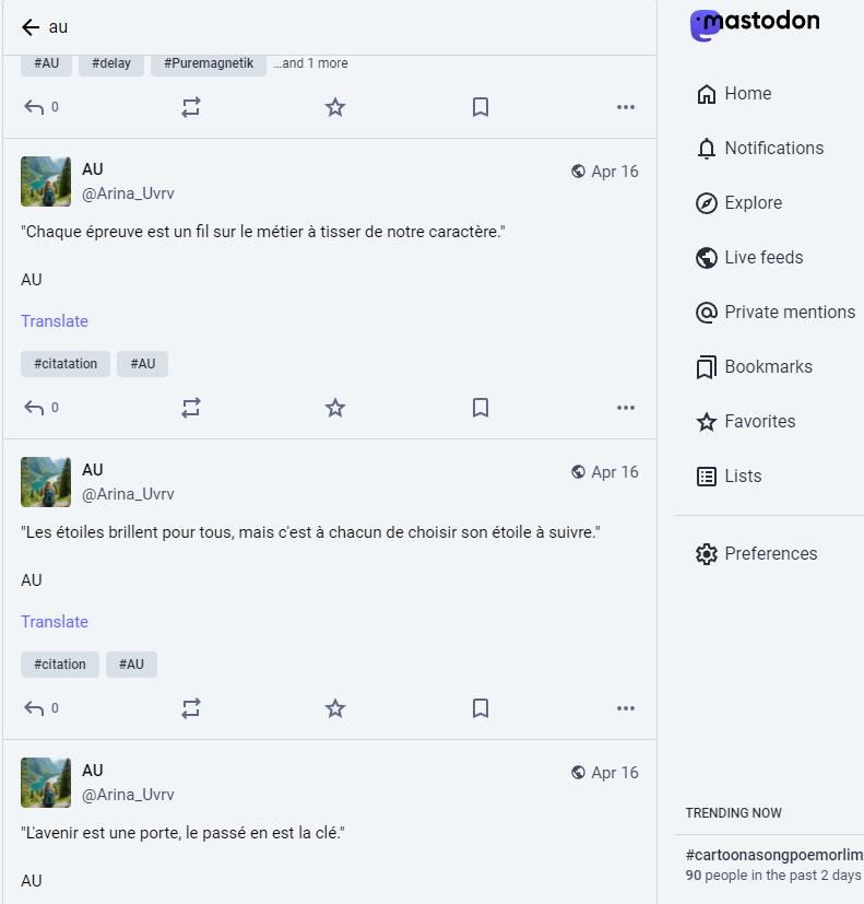 Je vais donc chercher sur divers réseaux sociaux le tag “#AU”.