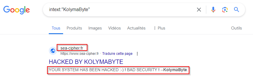 Je vais donc effectuer une recherche google plutôt simple sur le terme “KolymaByte”.