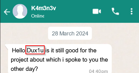 Nous avons dans le premier chat WhatsApp le pseudo que nous cherchons et qui est: