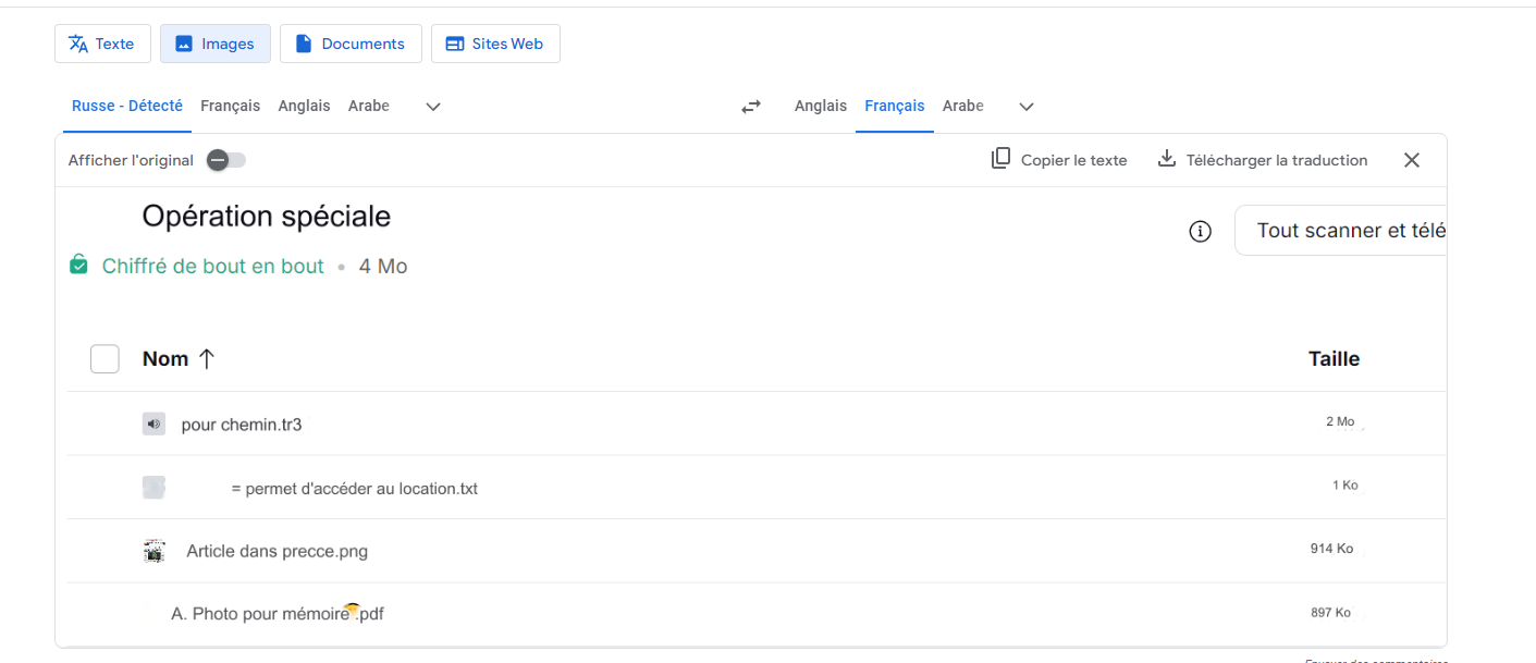 On tombe sur un Protondrive chiffré, je vois cependant plusieurs fichiers que j’ai traduis via google Traduction.