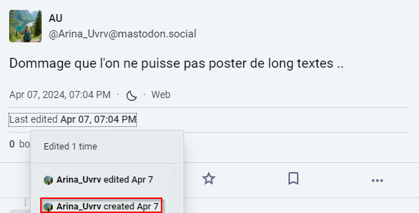 En descendant encore plus, je remarques deux choses. La première, c’est qu’il y a un post “modifié” qui est donc une piste très sérieuse, et la seconde qui me confirme cette pensée, c’est le gentil indice d’Arina qui dit que la clé c’est le passé. Sur certains réseaux sociaux, nous pouvons effectivement voir des modifications effectuées, ce que je vais faire.