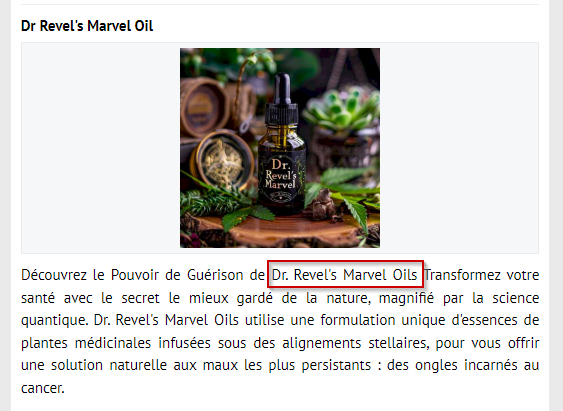 Ce lieu, “Dr Revel Marvel Oils” me rappelle que j’ai vu ceci sur le réseau social privé.