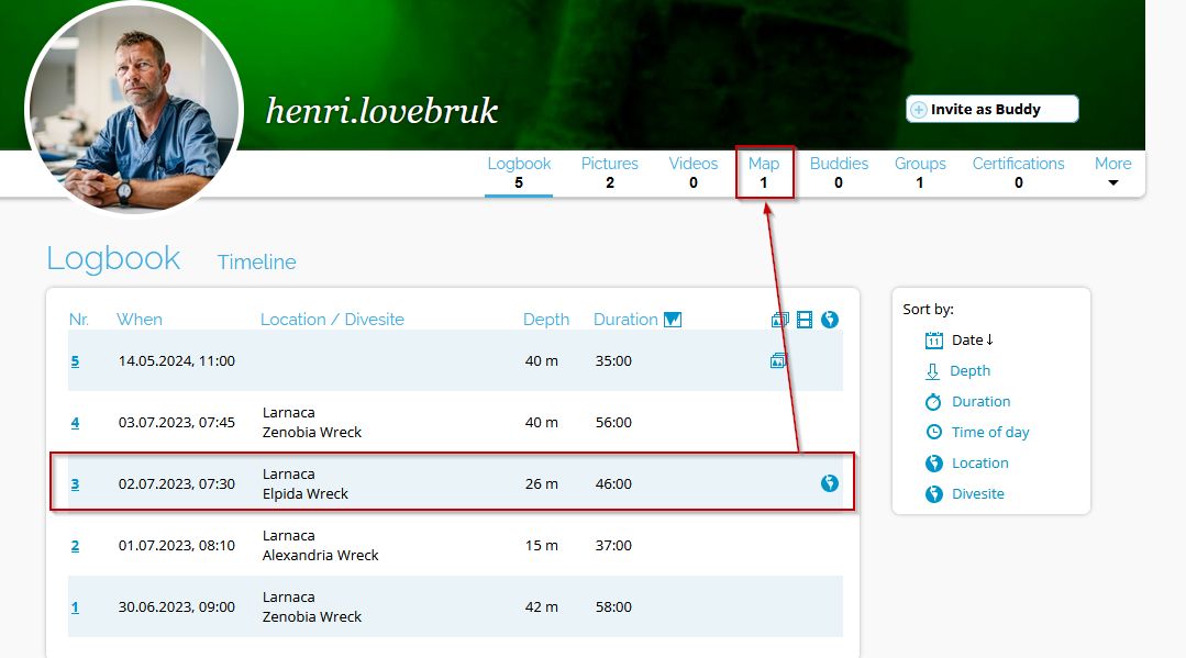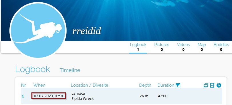 Il y a une seule plongée pour Raoul, et en date du 02 juillet 2023. Je vais donc sur le profil d’Henri une fois de plus pour vérifier si le deux juillet il a bien fait une excursion sous marine.
