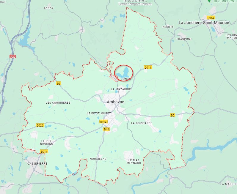 Je recherche donc un “lac” prêt de Ambazac sur la carte, en regardant qu’il s’agisse bien d’une grande surface d’eau.
