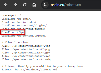Alors je vais voir sur le site Osain, et plus particulièrement sur le “robots.txt” qui est un fichier conçu pour l’indexation des pages sur les moteurs de recherches.