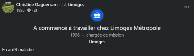 En descendant, je peux donc voir qu’elle était chargée de mission en 1996, mais qu’elle est désormais en arrêt maladie.