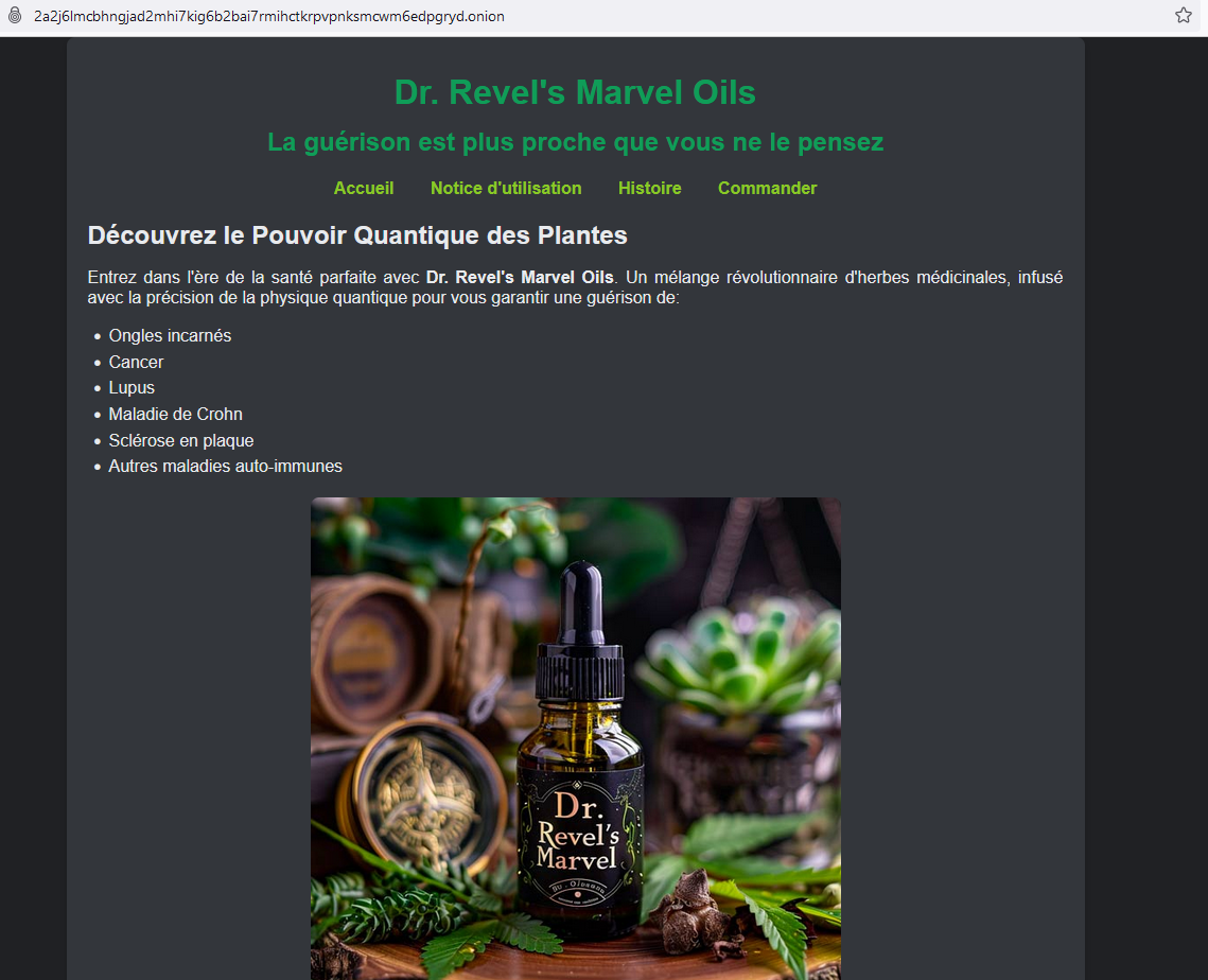 Nous sommes sur le site de commerce de Dr. Revel’s Oils, jusque la rien de bien explicite.