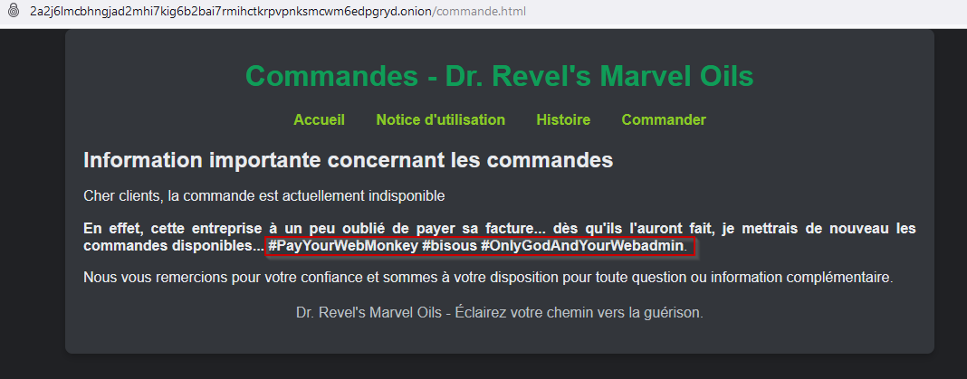 Sur la page de commande je vois une chose très intéressante! On peut y voir des tags de réseau social, voila la potentielle erreur de notre admin web.