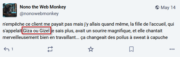 Il fait part de Gizem (pas Gizel ou Giza… -2 points MEH!!!) donc on peut conclure qu’il est le gestionaire du site.