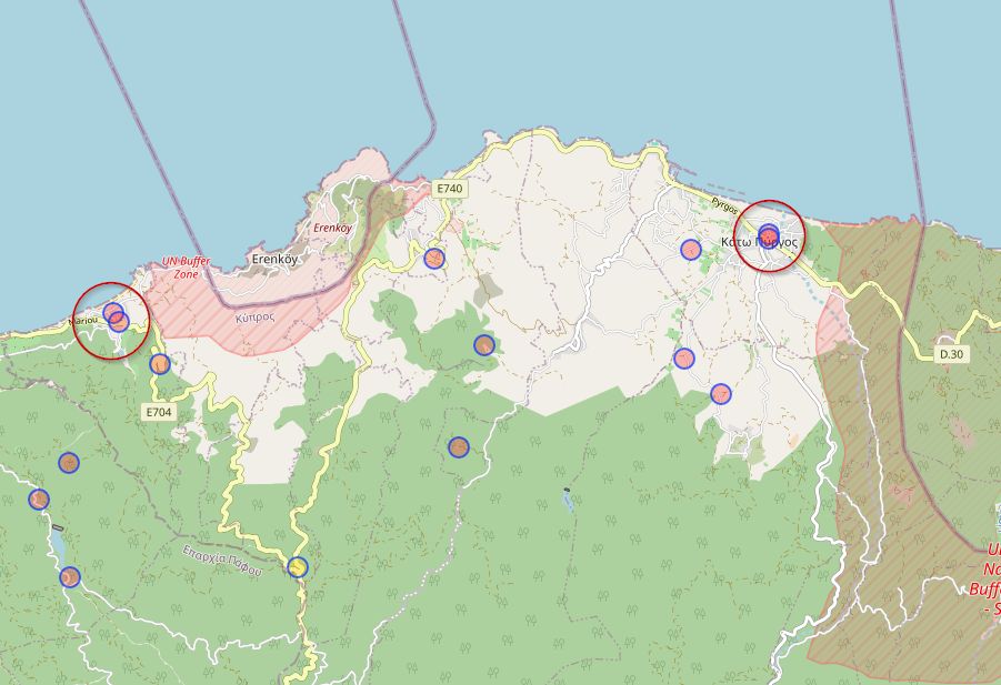 Il y a deux zones qui se démarquent car deux églises proches l’une de l’autre, je penses donc regarder a Kato Pyrgos.