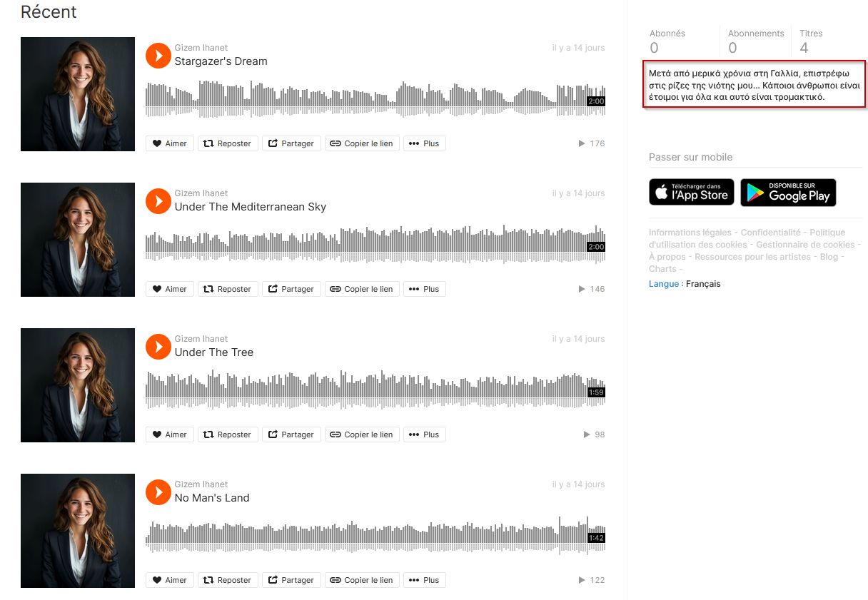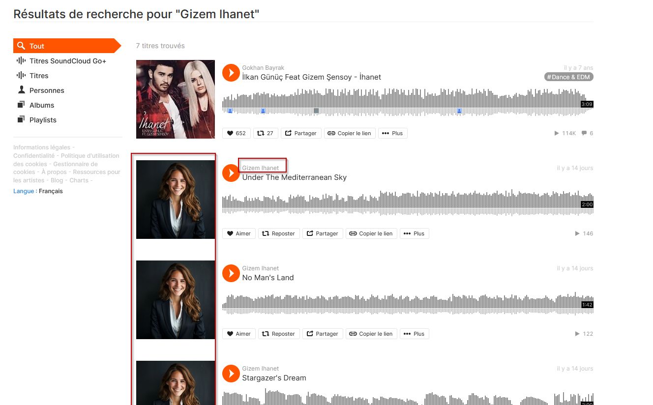 Il s’agit de “SoundCloud”, je vais donc voir sur ce site si je trouve des informations.