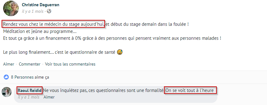 Avant d’intégrer le stage, un avis médical d’un médecin partenaire est indispensable. Comment s’appelle le médecin avec qui Christine semble être en contact ?