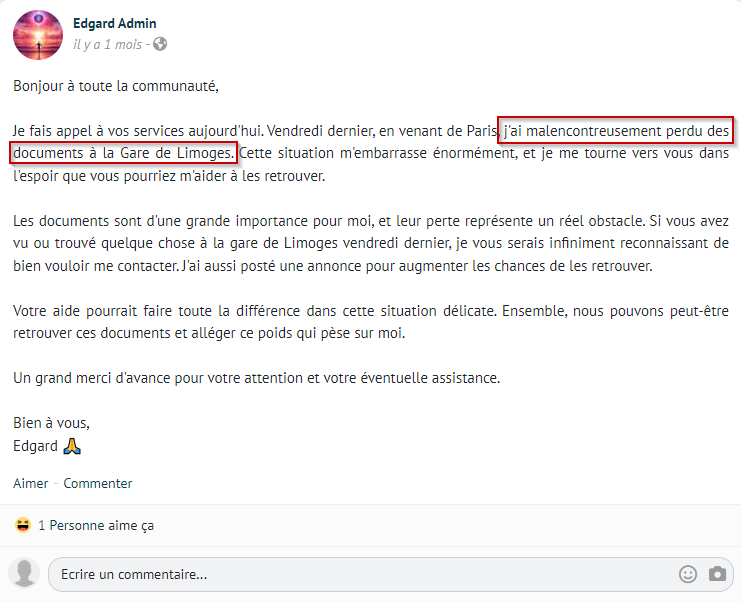 Bingo, on sait qu’il a perdu des documents importants à la gare de limoges, mais est-ce le nom souhaité? Je vais donc voir sur google si le nom de la gare de limoges est spécial.